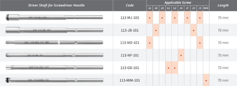 • JA/JF/JB/G1/G2/JK/JD/JO/JS/MIM Scews
