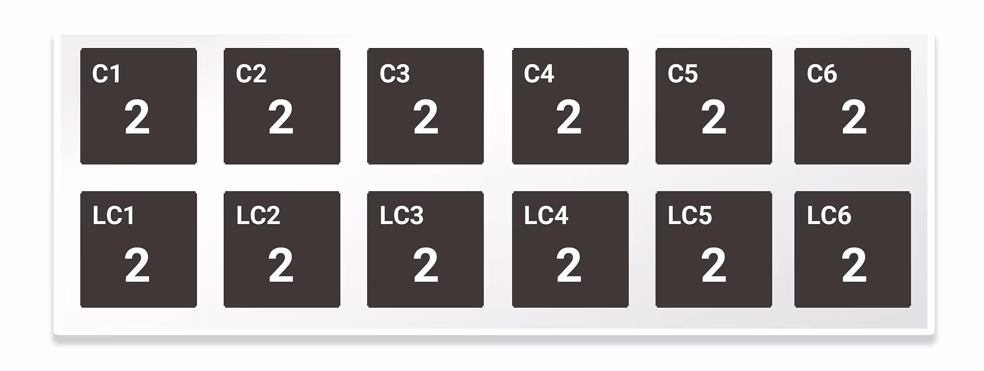 24 crowns, C and LC. Two each of sizes 1-6